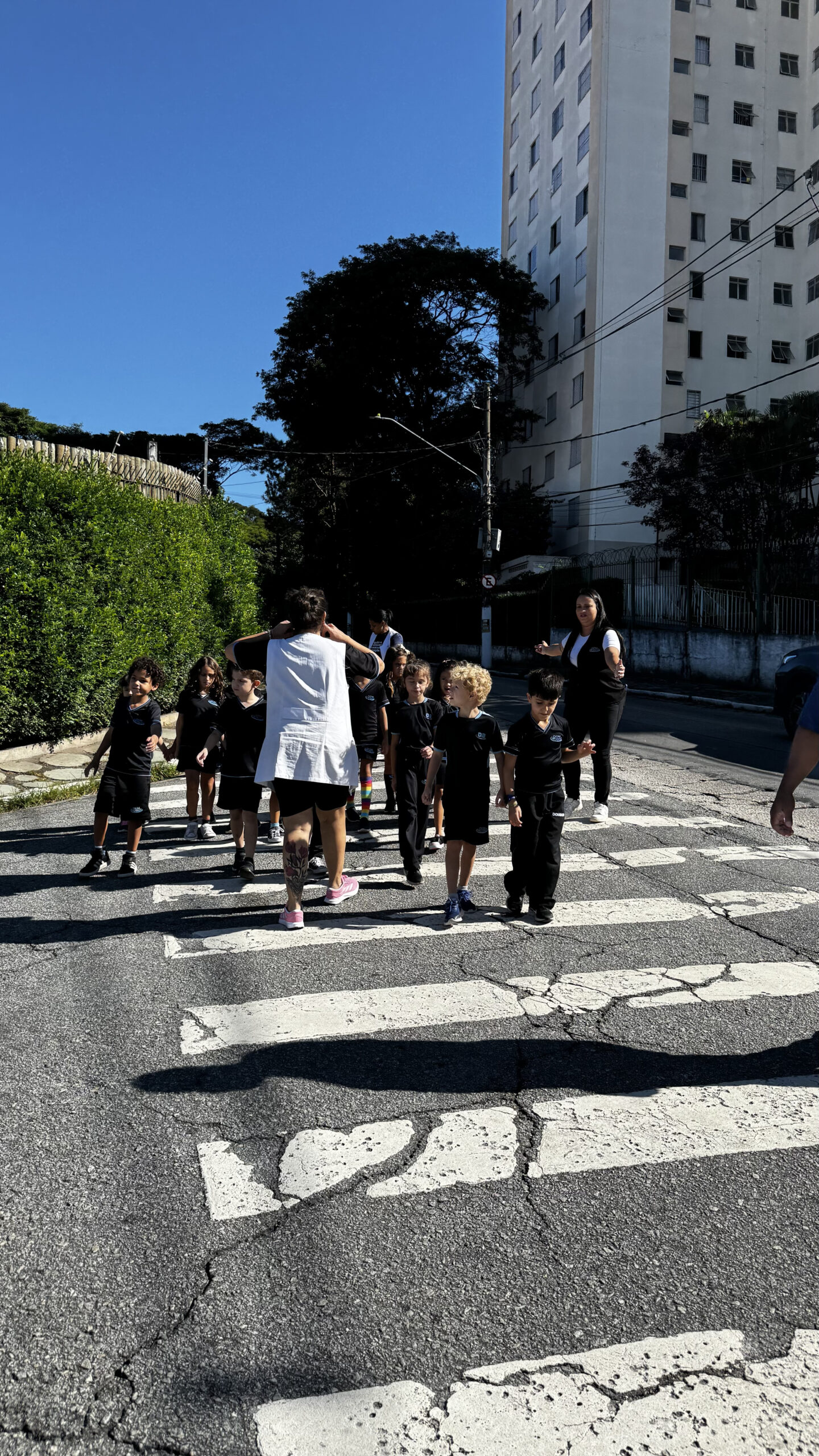 Durante a caminhada, os alunos foram incentivados a observar detalhes, fazer perguntas e registrar suas impressões. Essa imersão no cotidiano da vizinhança possibilitou descobertas sobre a arquitetura local, a flora e a fauna urbana, os diferentes tipos de estabelecimentos e a importância da convivência em comunidade. A “volta no quarteirão” não foi apenas um passeio, mas uma jornada de aprendizado que, certamente, ampliou as perspectivas dos alunos sobre o mundo ao seu redor e reforçou a ideia de que a educação acontece em todos os lugares.