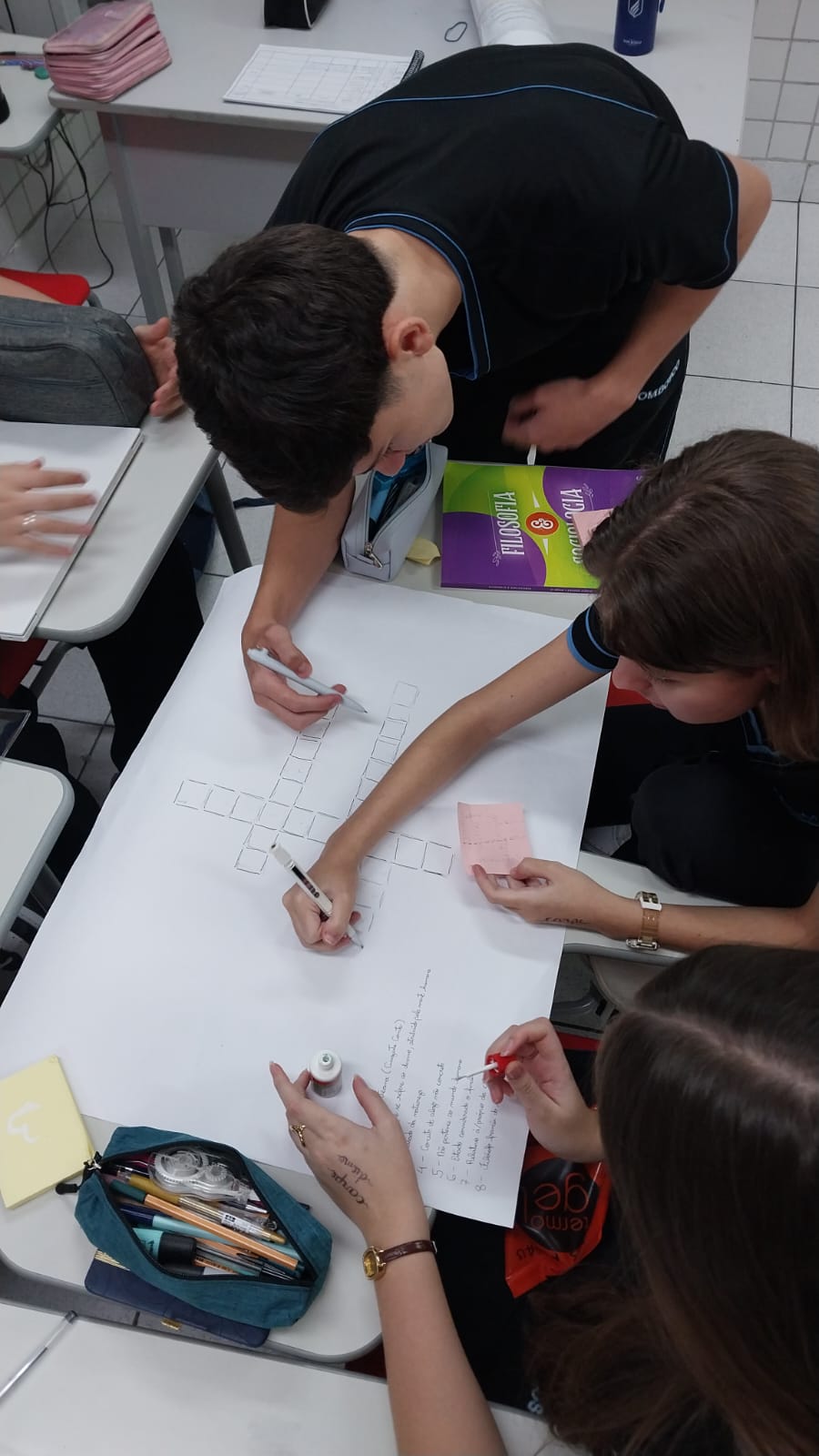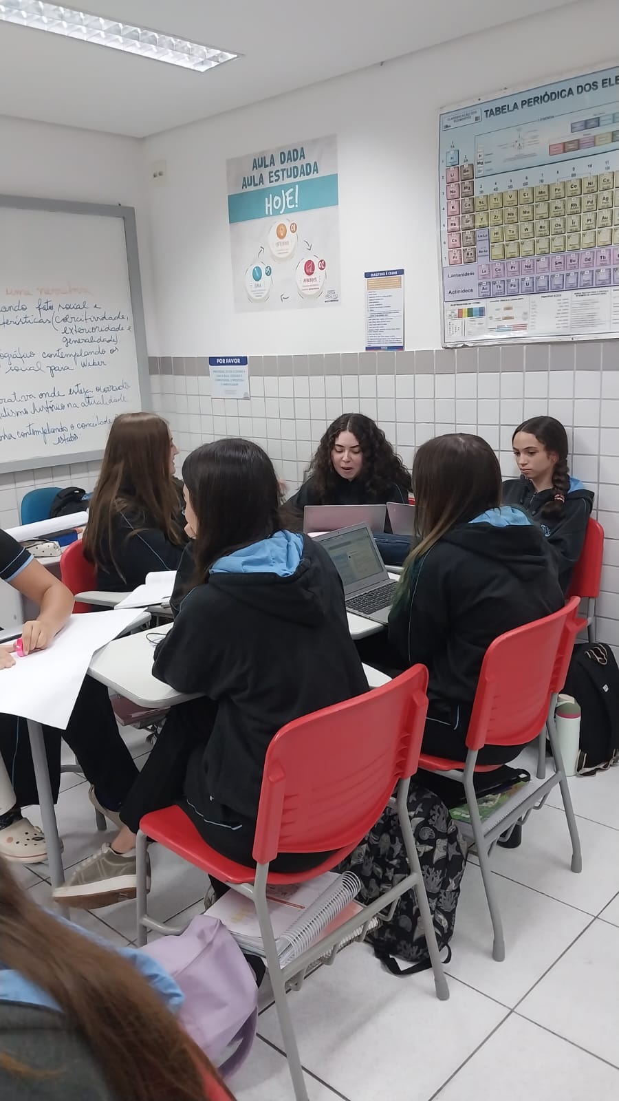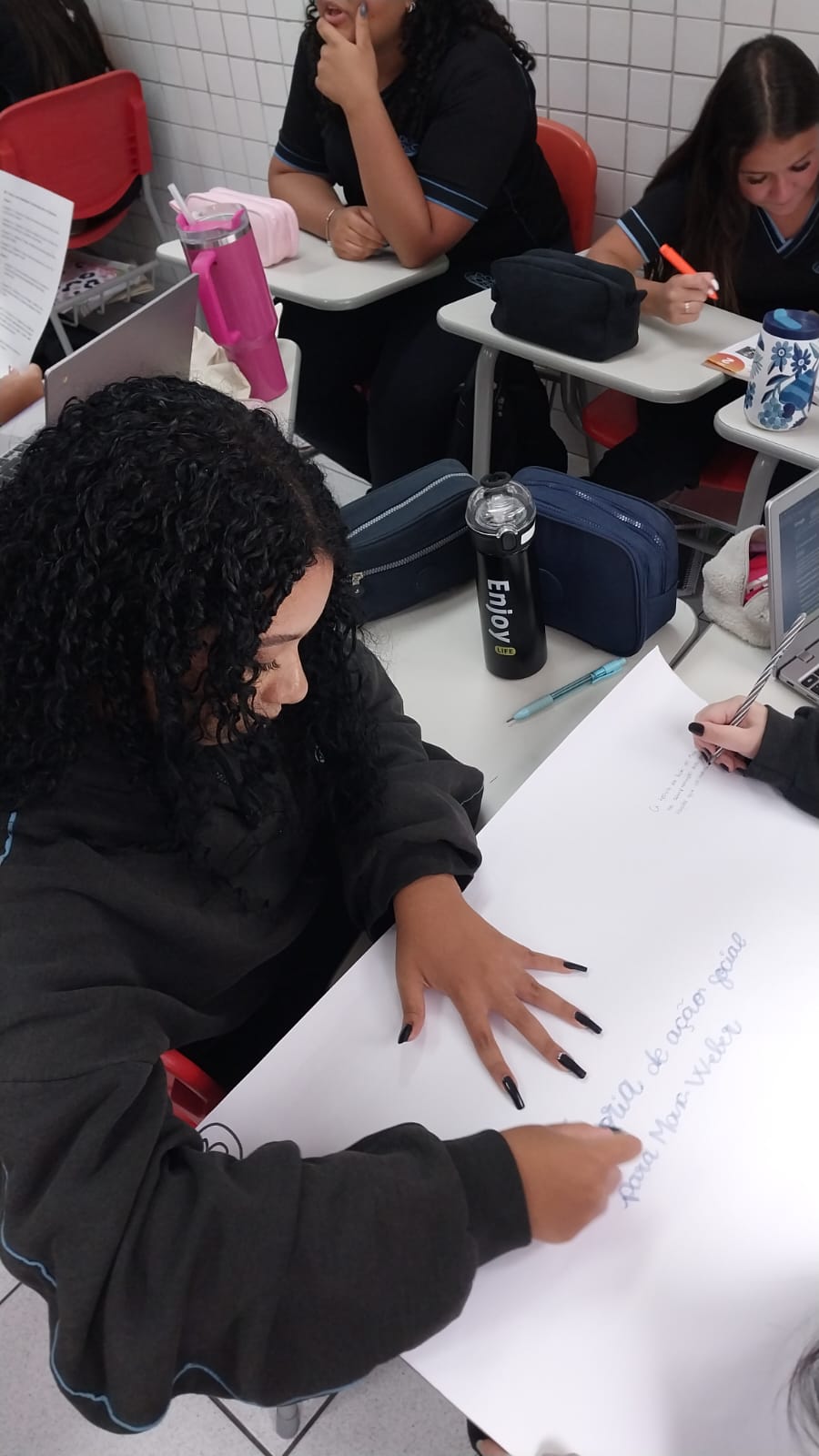 Com base nos conceitos estudados, os estudantes estabeleceram relações entre teoria e situações do cotidiano, refletindo sobre a aplicabilidade dos conteúdos na vida real. Ao final, os painéis produzidos foram expostos e apresentados, evidenciando as conclusões construídas coletivamente.