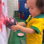 Em fevereiro, celebramos o carinho e a amizade com o Valentine’s Day! Para explorar esse tema de forma lúdica e sensorial, os babies pintaram corações com tinta vermelha, estimulando a criatividade e a coordenação motora.
