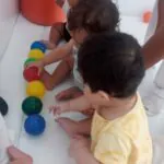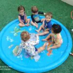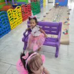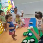Por fim, o banho de piscina, além de ser uma atividade recreativa, promoveu a socialização, e as festividades do Carnaval proporcionaram um ambiente lúdico e interativo, incentivando a interação entre os bebês e seus amiguinhos.