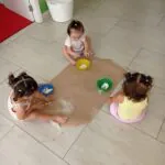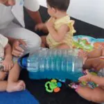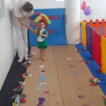 As atividades propostas contribuíram para o desenvolvimento dos nossos pequenos. O manuseio do macarrão ampliou suas experiências sensoriais, expressivas e corporais. A retirada das bolinhas da fita adesiva ajudou a estimular o alongamento corporal e a coordenação visomotora. A descoberta dos brinquedos pendurados no guarda-chuva de diferentes maneiras favoreceu a percepção sensorial e a autonomia. Já a interação com o aquário sensorial, estimulou a percepção visual, a curiosidade e a motricidade.