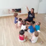 Em fevereiro, exploramos os sons e movimentos por meio de canções de brincadeiras. Conhecemos a professora, o nome dos amiguinhos, nosso companheiro violão e outros instrumentos musicais.