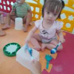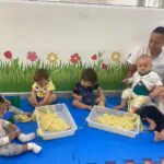 Em fevereiro, os bebês do BI participaram de diversas brincadeiras e atividades que proporcionaram momentos de alegria e diversão. Durante as experiências, exploraram diferentes texturas ao manusear o macarrão cozido, observando, descobrindo e manipulando-o de várias formas. Divertiram-se ao retirar as bolinhas presas na fita adesiva, encantaram-se com o aquário sensorial feito com garrafa PET, peixinhos de EVA e água colorida com corante e vivenciaram momentos alegres ao explorar os brinquedos pendurados em um guarda-chuva. Além disso, refrescaram-se brincando na piscina e participaram com entusiasmo do desfile e bailinho de Carnaval.