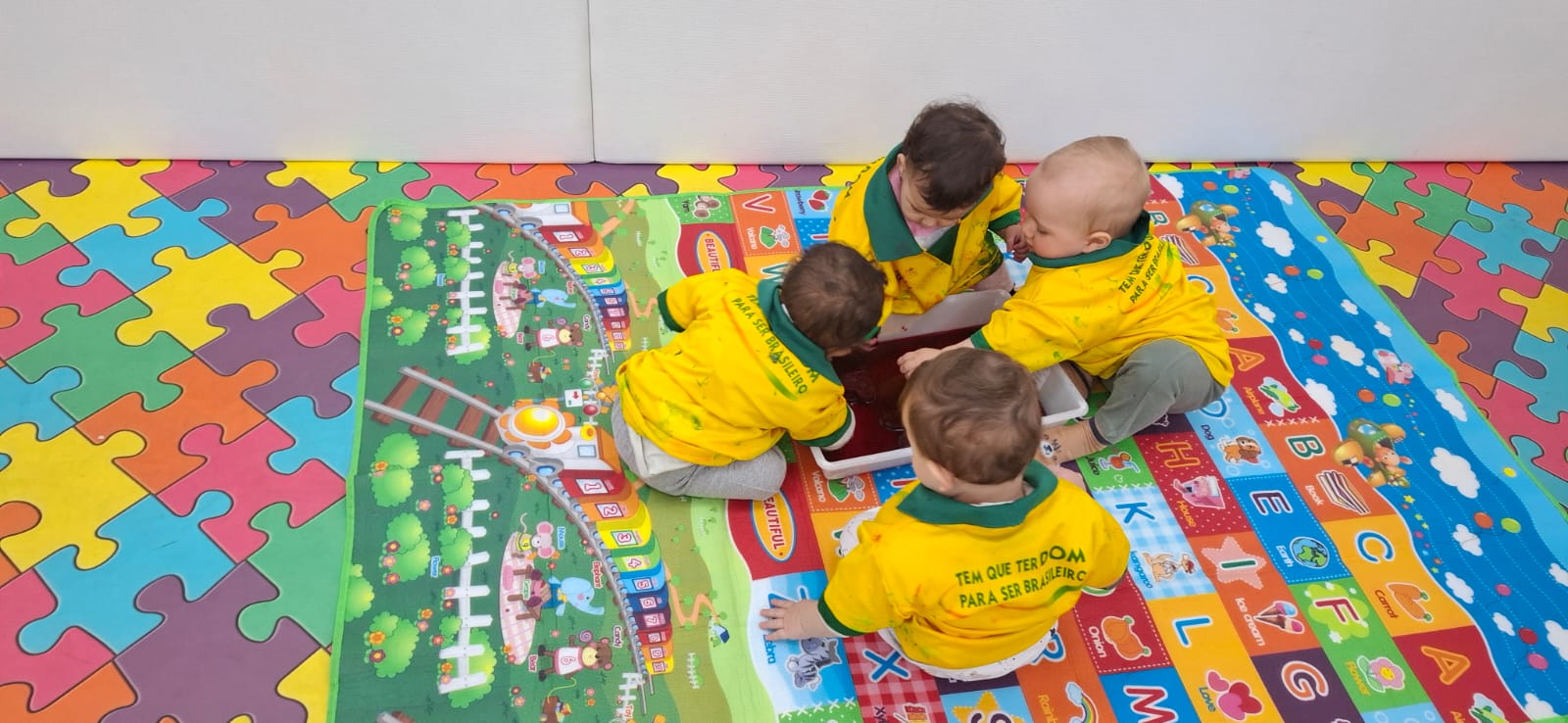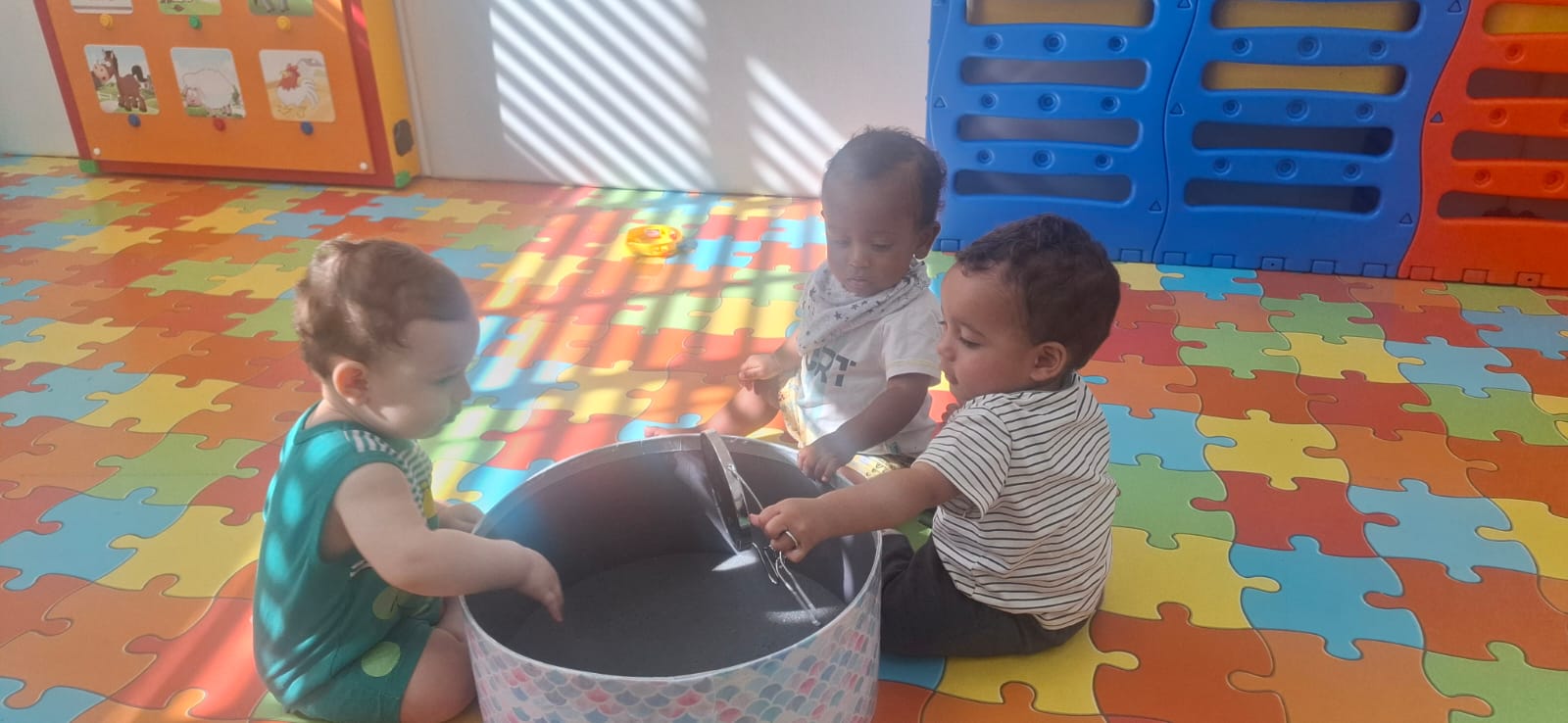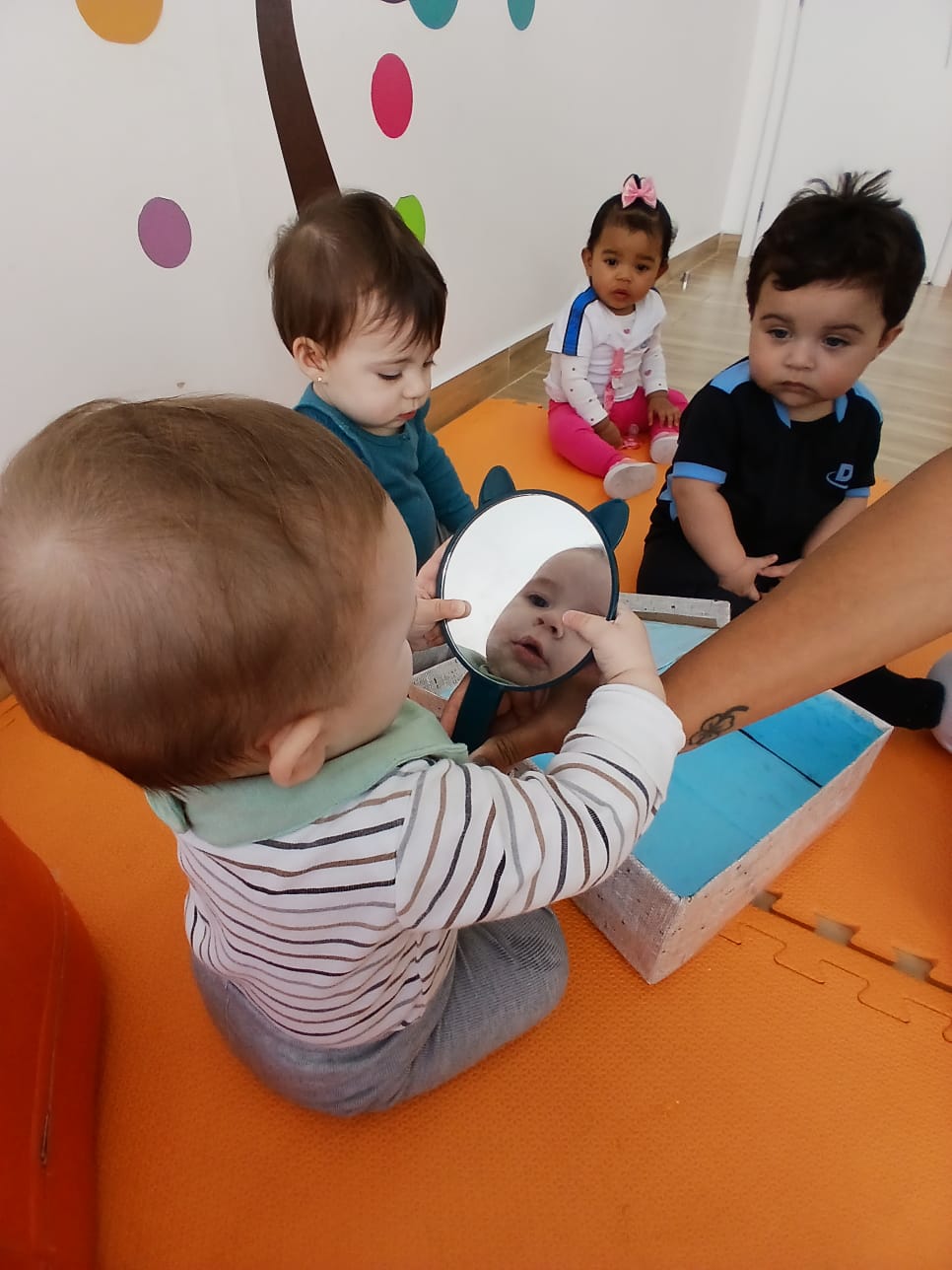 Mesmo nos gestos mais simples – um toque em uma textura diferente, o olhar curioso diante do espelho ou a reação a um novo som – estão presentes grandes conquistas do desenvolvimento. É nesse ritmo delicado e respeitoso que construímos, juntos, as primeiras experiências de aprendizagem.