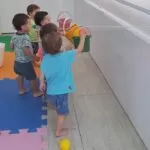 Em março, os bebês participaram com muito entusiasmo das atividades propostas e das datas comemorativas. Brincaram com vários tamanhos de bolas, encaixaram os prendedores no painel dos corações, carimbaram as mãozinhas, arremessaram as bolinhas na boca do palhaço.