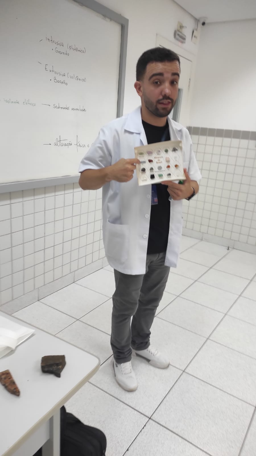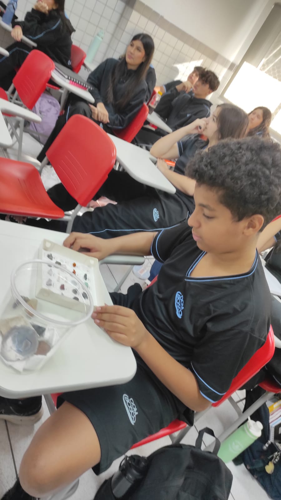 A aula inaugural de Geografia, com o Professor Anésio, nas turmas do 9º ano, teve como objetivo retomar conceitos já estudados sobre rochas e minerais, aproximando o conteúdo da realidade cotidiana dos alunos. Por meio da observação de exemplares, os estudantes puderam relacionar esses materiais com objetos, construções e tecnologias presentes em seu dia a dia.
