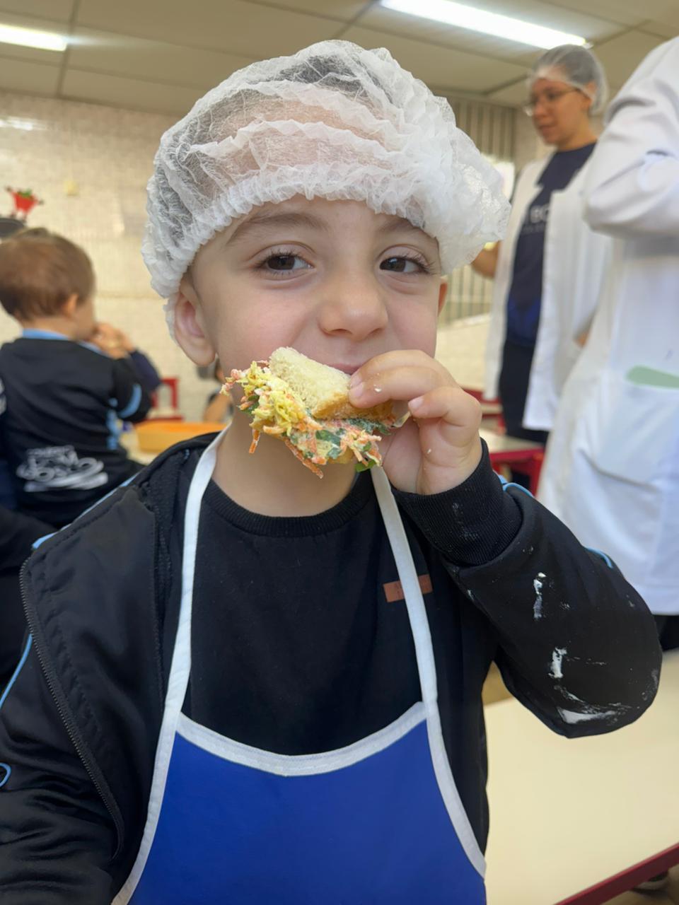 Neste mês, a equipe de Nutrição realizou uma atividade especial com os alunos sobre alimentação saudável! As crianças prepararam um patê de frango caseiro, mostrando na prática que lanches saborosos também podem ser simples e nutritivos.