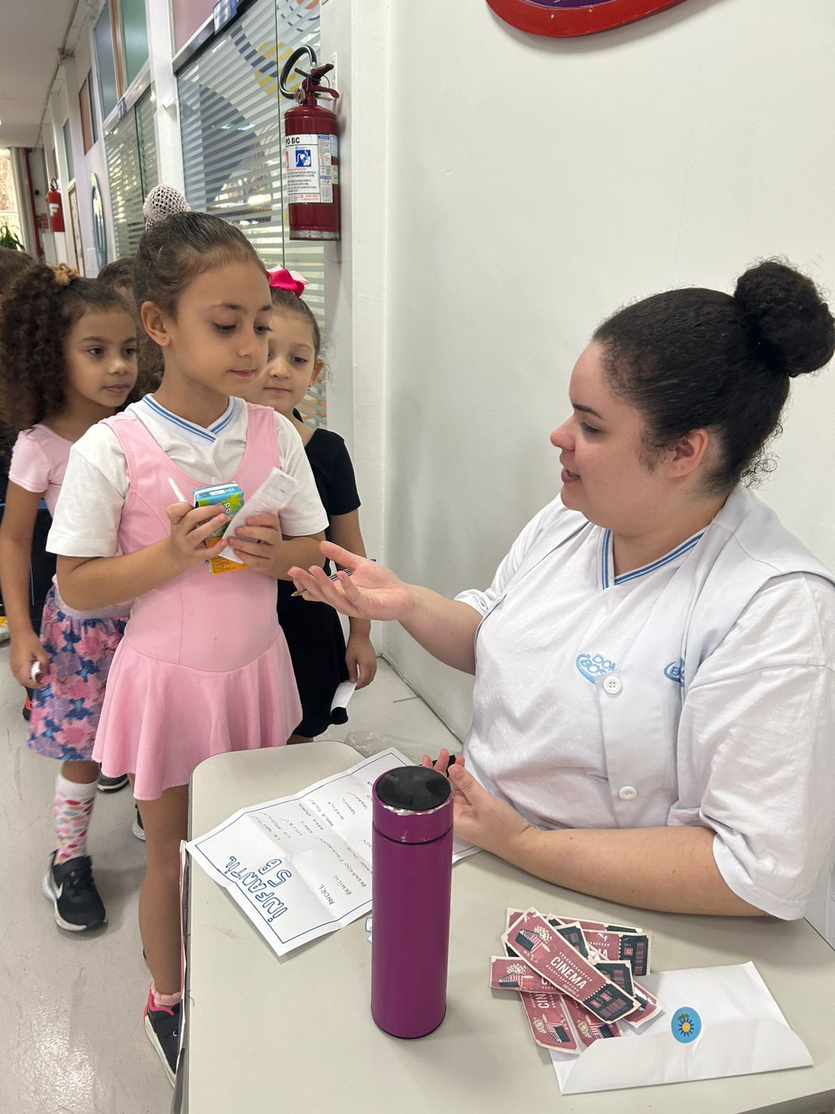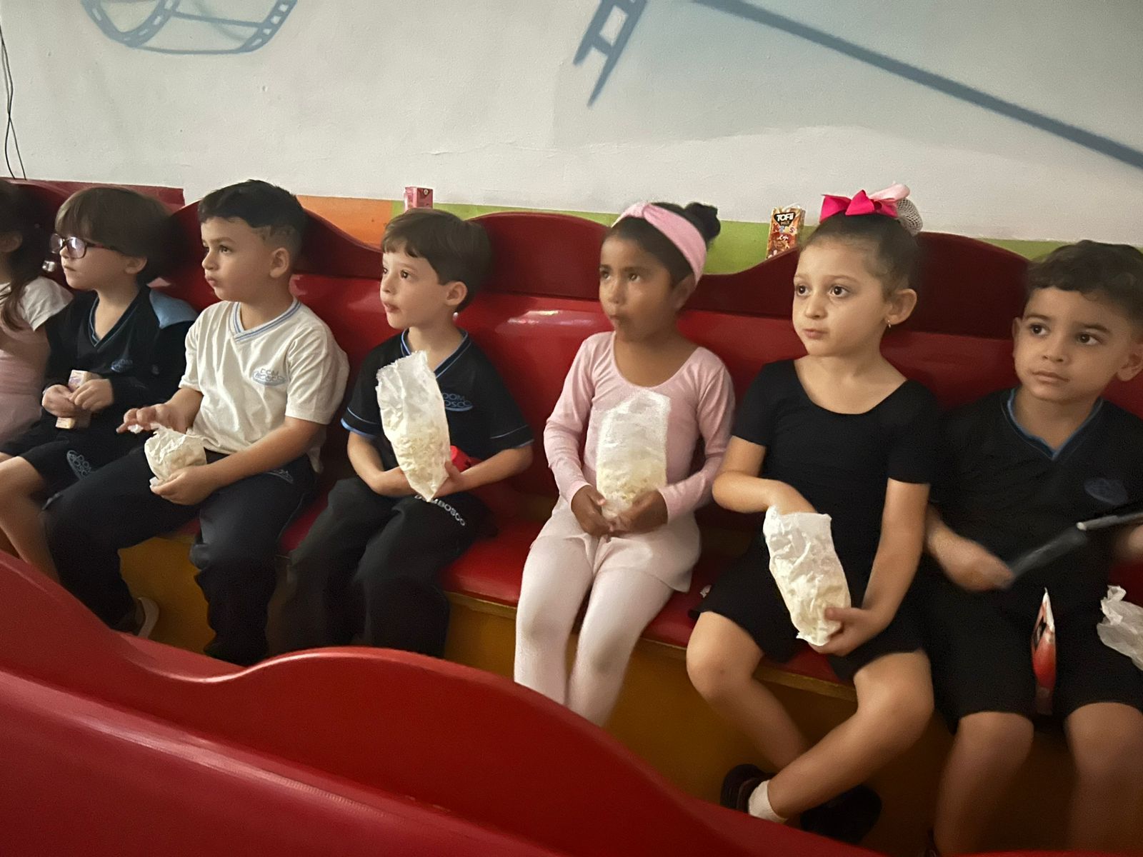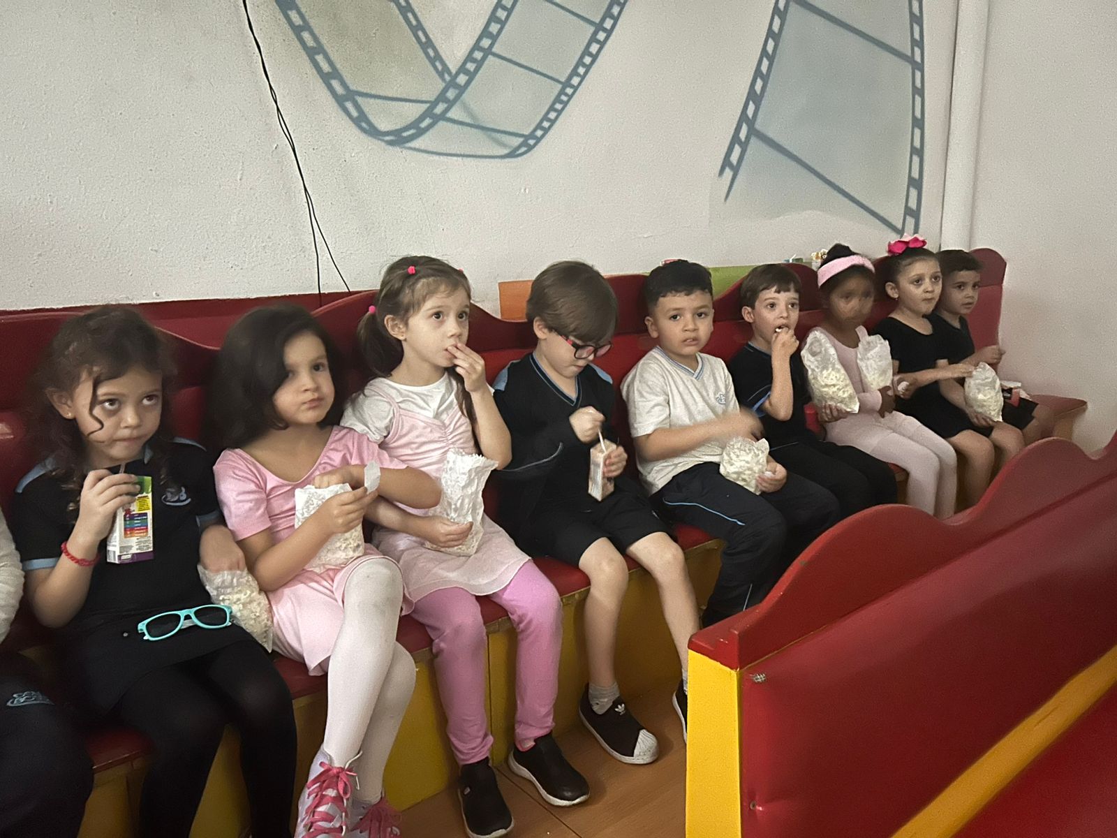 Sob a orientação das professoras Giseli e Daiane, os alunos participaram da criação de uma bilheteria de cinema dentro da própria escola. A proposta buscou proporcionar uma experiência completa de sessão de cinema: desde a escolha do ingresso, a espera na fila e o respeito ao silêncio durante o filme, até o consumo da pipoca com higiene e responsabilidade. Tudo isso sem deixar de lado a magia de mergulhar na narrativa apresentada.