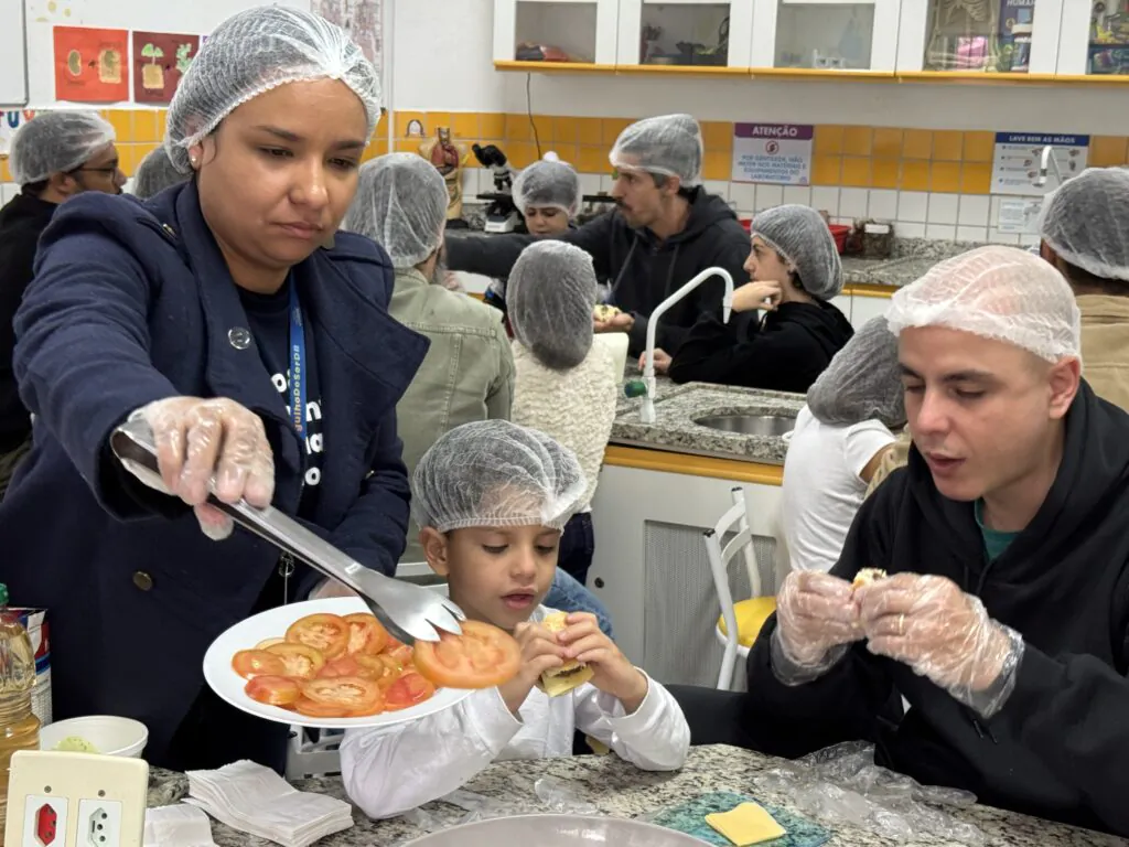 Já na atividade Mistura que Aproxima, pais e filhos colocaram a mão na massa preparando mini hambúrgueres, provando que cozinhar juntos é uma receita infalível para criar memórias afetivas.